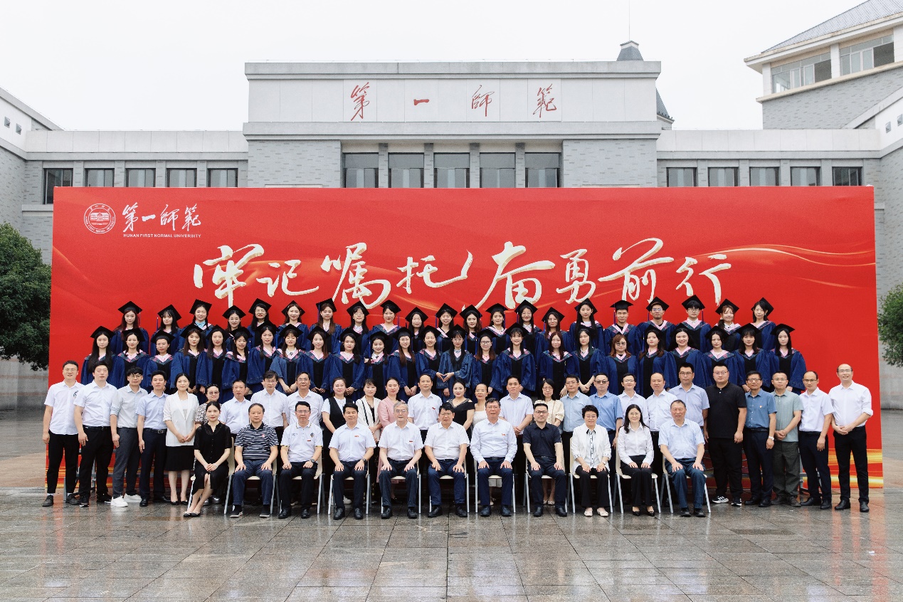 湖南师范大学研究生院院长郑贤章送上深情寄语:希望同学们不忘初心,谨记一师和师大校训,践行“要做人民的先生 先做人民的学生”的人民情怀,践行“仁爱精勤”的价值理念;希望同学们不忘学习,保持独立思考、追求真理的科学态度,通过不断学习丰满羽翼;希望同学们不忘母校,带着两所母校的期待与祝福,踏实向前,将智慧和汗水播撒在祖国广袤天地间。