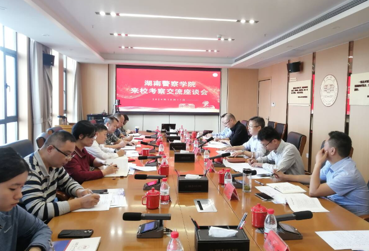 10月17日,湖南警察学院党委委员、副校长刘绪崇等一行来校考察交流。交流座谈会在百熙楼710会议室举行。副校长石元泉,科研处、学科规划与研究生处、相关二级学院负责人参加座谈。会议由学科规划与研究生处处长欧阳章东主持。