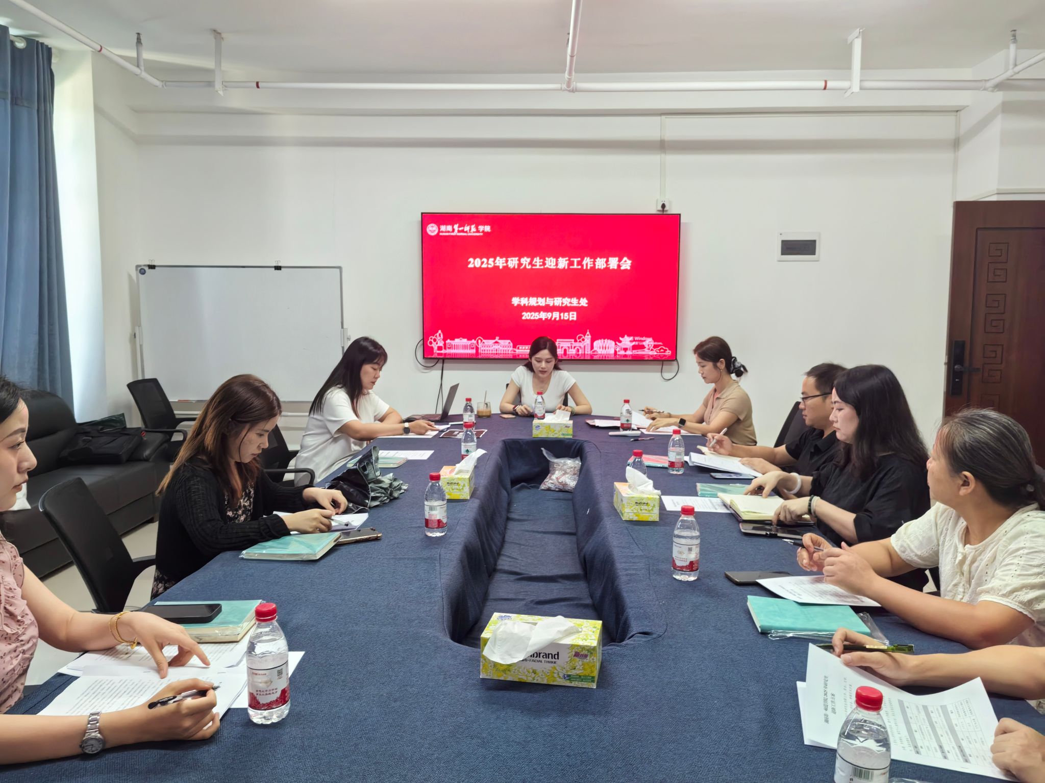 为确保2025级研究生新生入校工作稳妥有序推进,9月15日下午,我处在百熙楼918会议室组织召开迎新工作部署会,各研究生培养学院研究生辅导员及我处全体成员参会。