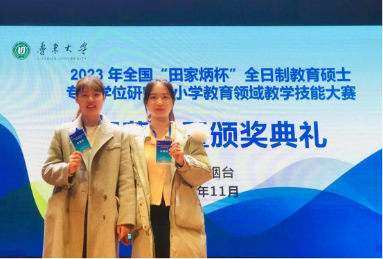 2023年11月19日,由鲁东大学承办的2023年全国“田家炳杯”全日制教育硕士专业学位研究生(小学教育领域)教学技能大赛圆满落幕。经过激烈角逐,我校教育学院22级小学教育专业联培研究生李学溦、龚依依代表学校双双荣获三等奖,获奖人数在此次参赛的湖南省高校中并列第一。